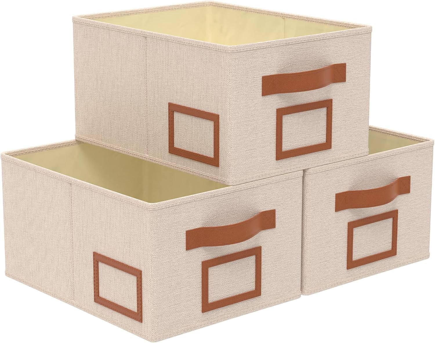 OUTBROS Foldable Storage Box for Shelves, 15.7 x 11.8 x 7.9 inch Fabric Baskets, Wardrobe Organiser with Handles, Suitable for Storing Clothes, Books, Cosmetics (Beige, 3-Pack)