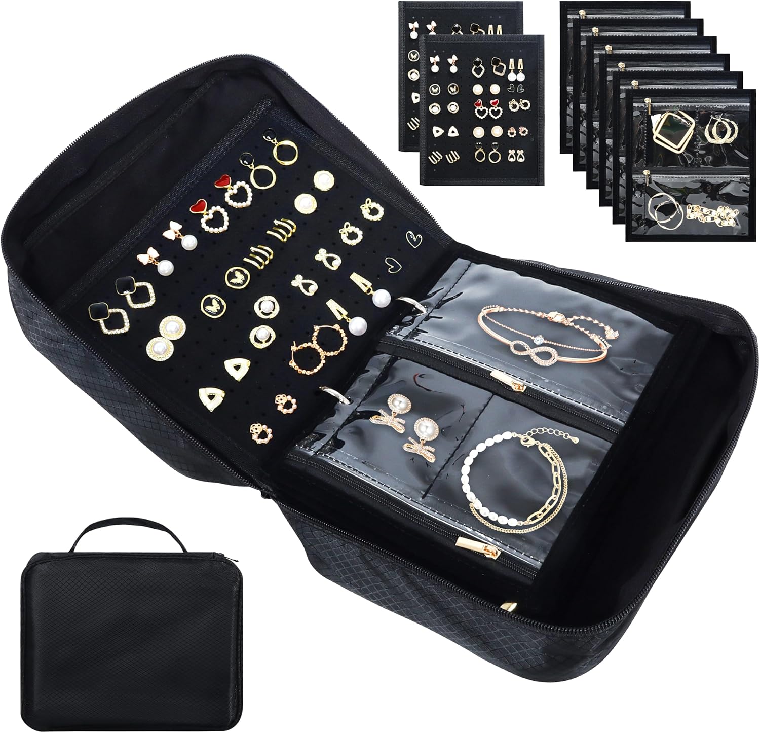 - 【SPACIOUS & PORTABLE TRAVEL ESSENTIAL】Fits jewelry for 7-14 day trips (9×7.25×3 inches), compact for carry-ons, purses, and beach bags. Secure zipper prevents loss.