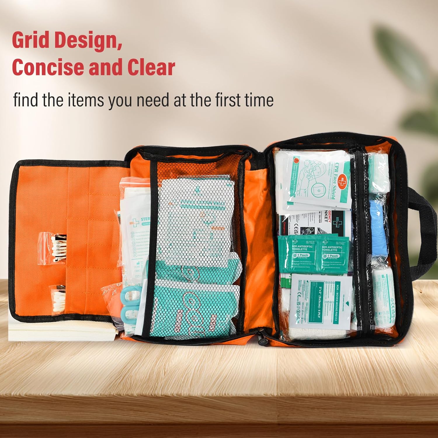 - Comprehensive First Aid Kit: This first aid kit features 380 pieces essential items including various bandages, gauze rolls in different sizes, instant cold packs, medical scissors, emergency blankets, and etc., ensuring you are fully prepared for any emergency situation