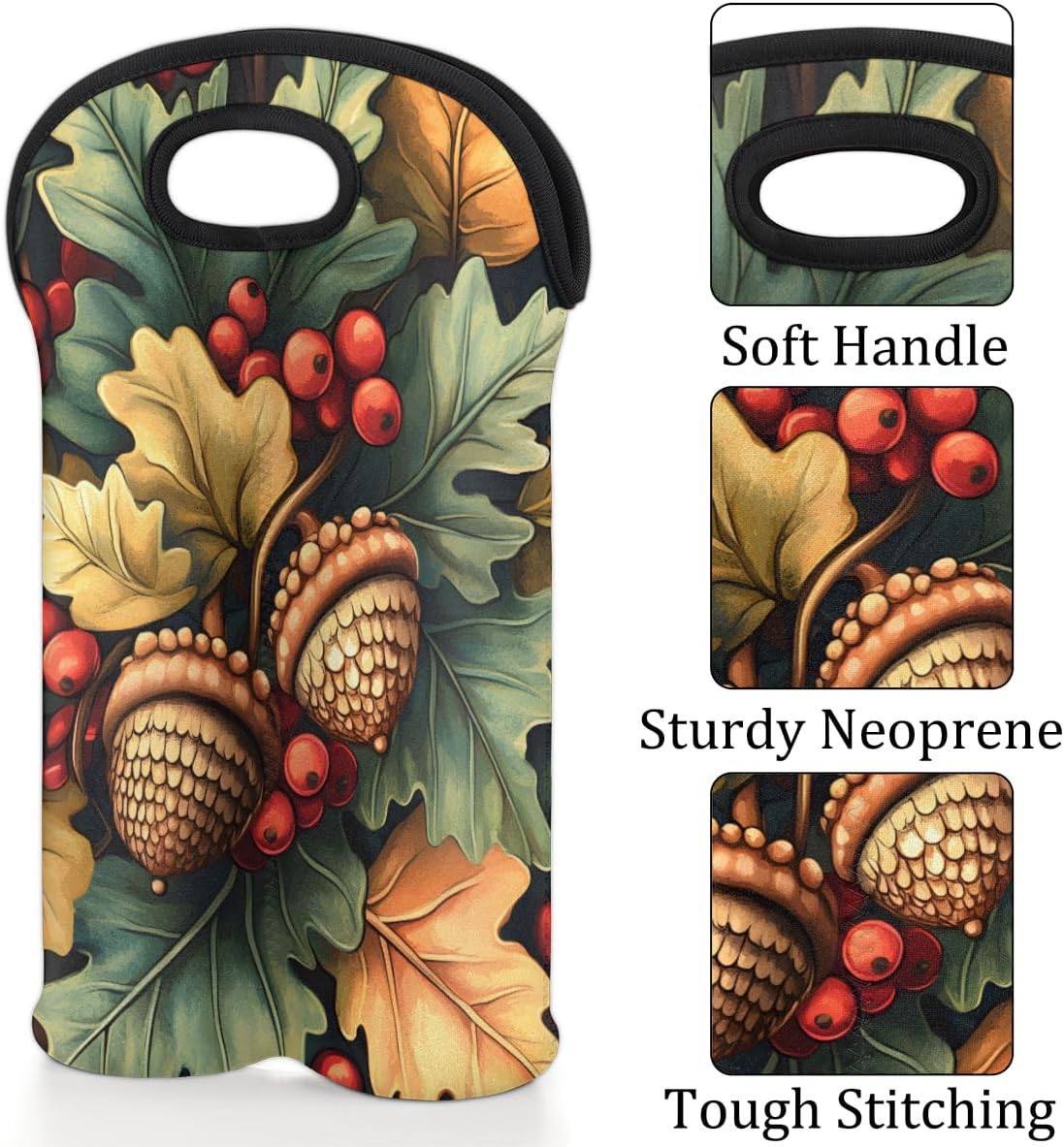 Neoprene Wine Tote, Bottle Carrier Gag Insulating Neoprene Thicker, Insulated Wine Bag for Travel Holds Two Bottles, Bottle Carrier Bags Protect the Bottles, Pinecones