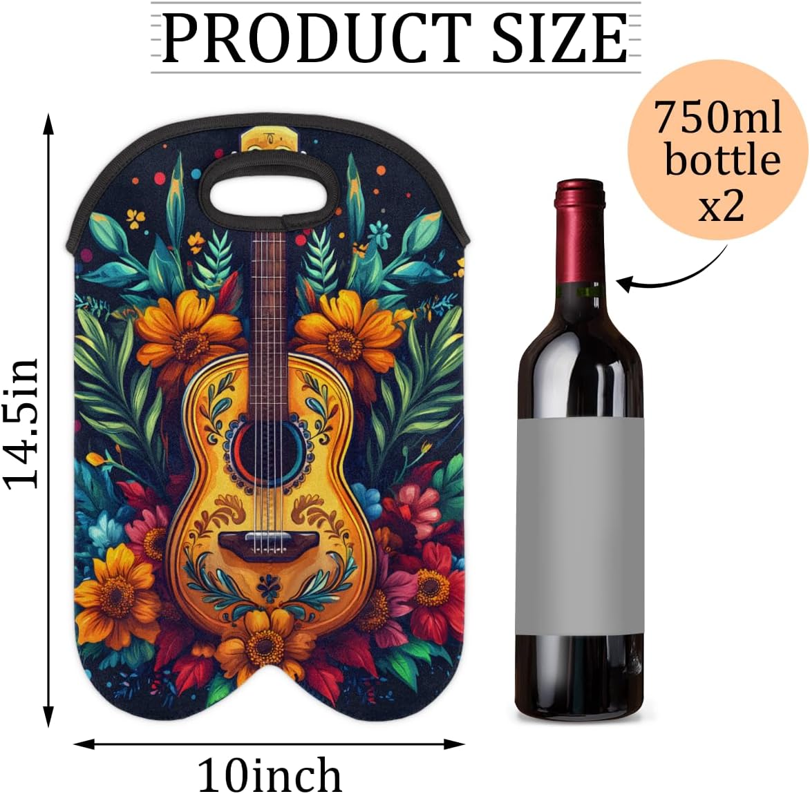 Neoprene Wine Tote, Bottle Carrier Gag Insulating Neoprene Thicker, Insulated Wine Bag for Travel Holds Two Bottles, Bottle Carrier Bags Protect the Bottles, Guitar