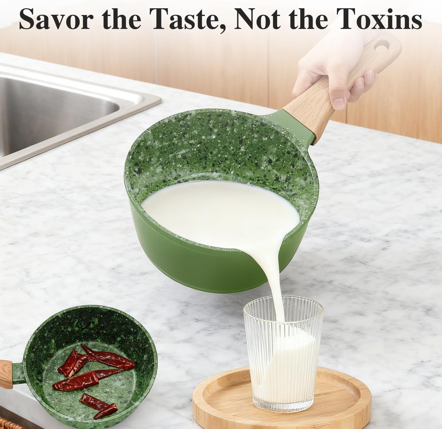 Nonstick Cookware Set, 2-Piece Non-Toxic Coated 8.5 Inch Frying Pan & Saucepan with Lid, PFOA Free Dishwasher Safe, Induction Compatible, Beginner Kitchen Pots and Pans Set, Green