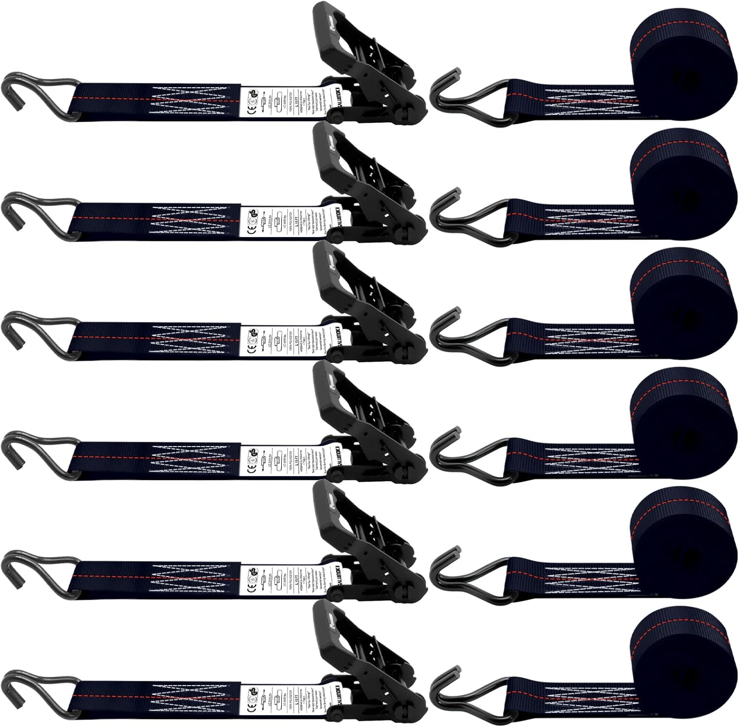 - Package Include: 6 Pack x 2 inch Ratchet Tie Down Strap Double J Hook 15ft Black