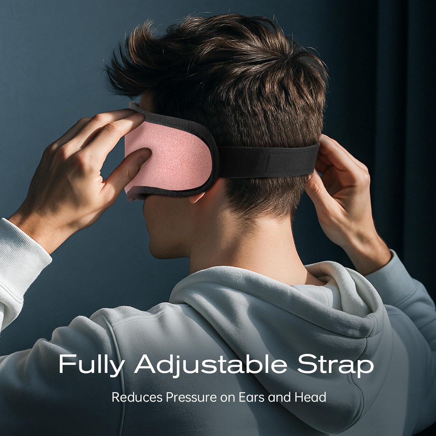 3D Sleep Mask with Bluetooth Headphones, Sleeping Headphones for Side Sleepers, Wireless Music Eye Mask with Ultra-Thin Stereo Speakers for Men, Women, Tech Gifts, Pink