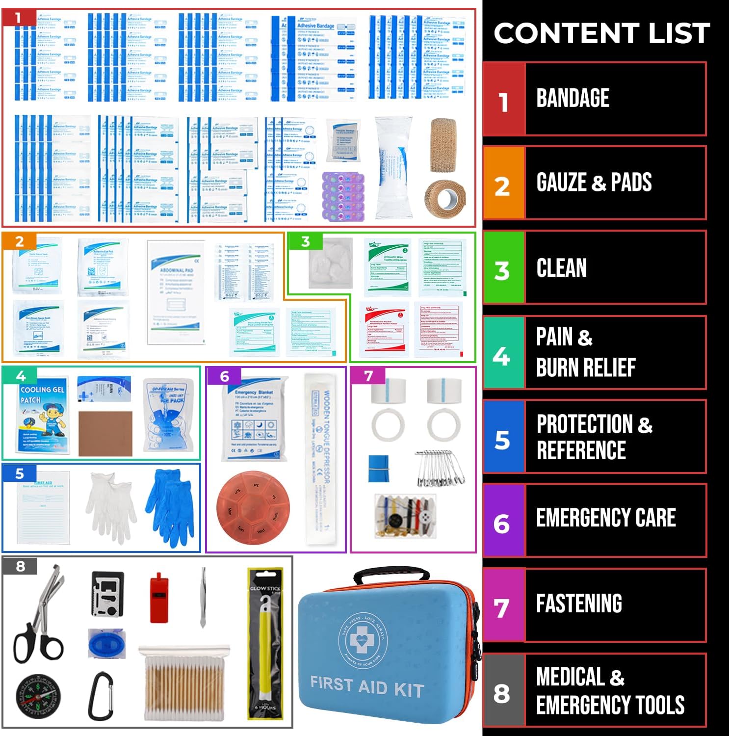 - Premium Dual-Tone Gaming Design:Striking dual-tone exterior with bold, inspired aesthetics creates instant recognition. The interior showcases premium fluorescent-coated lining, delivering cutting-edge design elements that elevate this professional emergency kit.