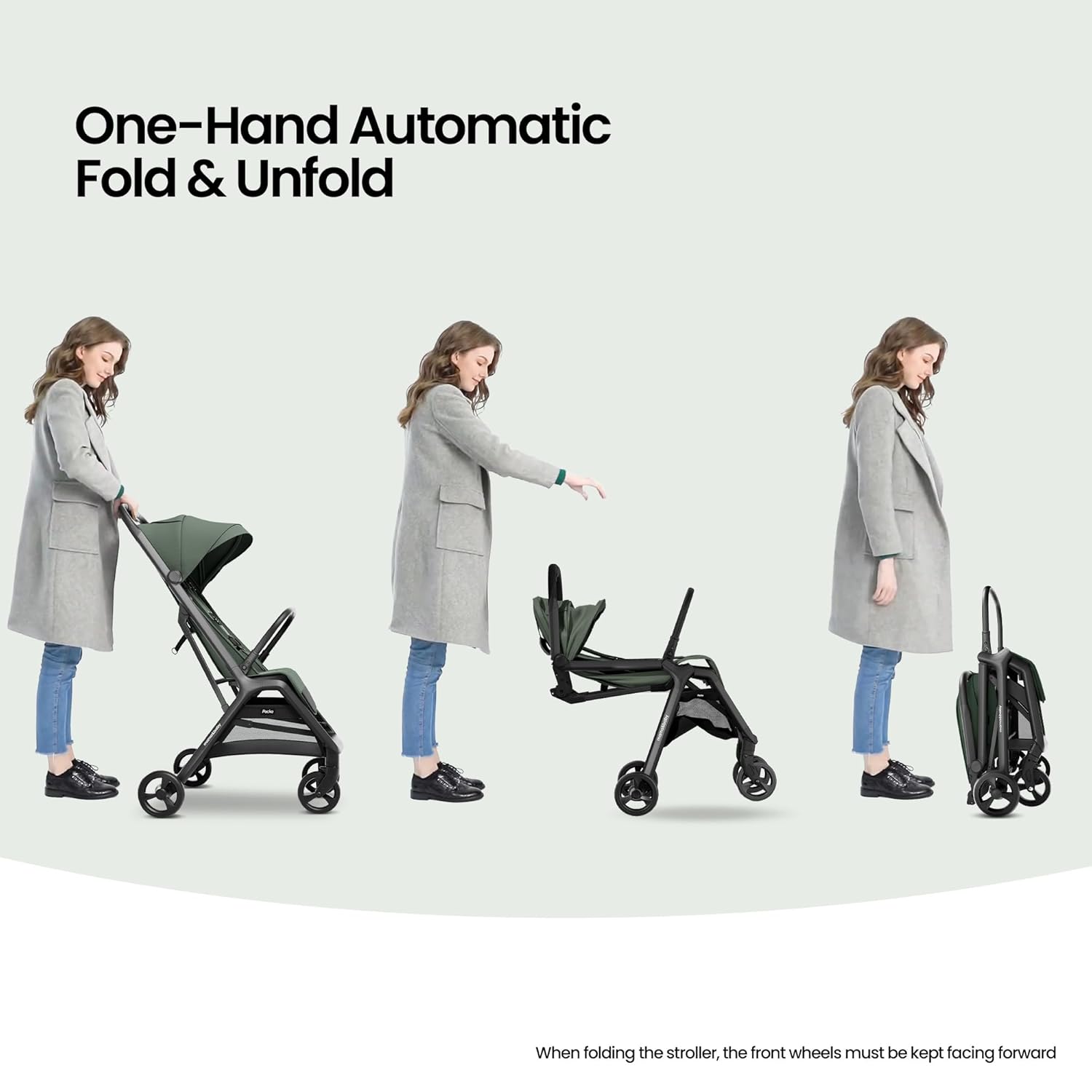 - Automatic Folding & Compact – One-hand auto fold for quick storage, even while holding your baby. This compact travel stroller fits in car trunks and small spaces for city travel or day trips.