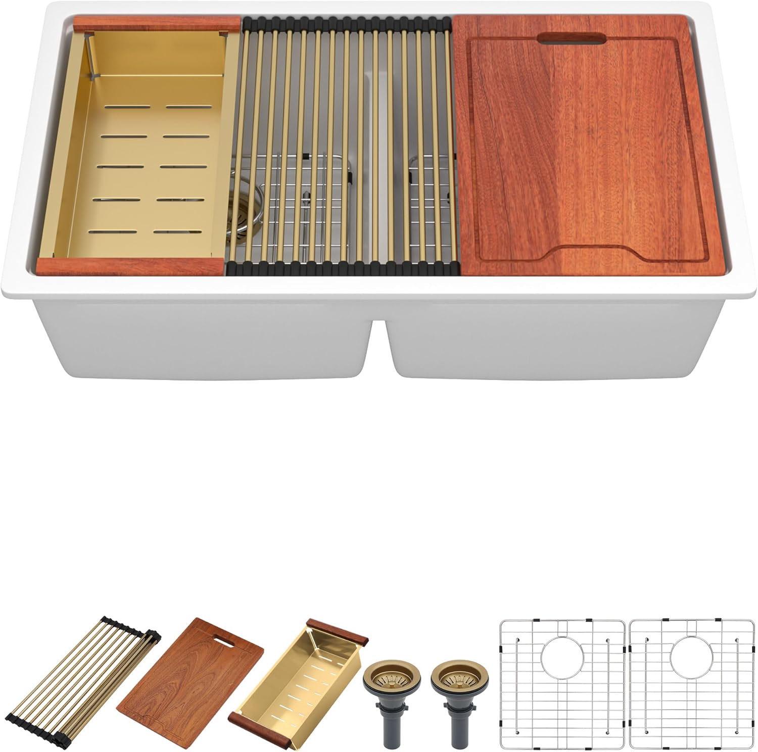 - Classic White Sink for kitchen: this quartz kitchen sink blends seamlessly into any decor, while the integrated workstation and luxury accessories elevate your meal prep. The white undermount kitchen sink can make you kitchen more stylish