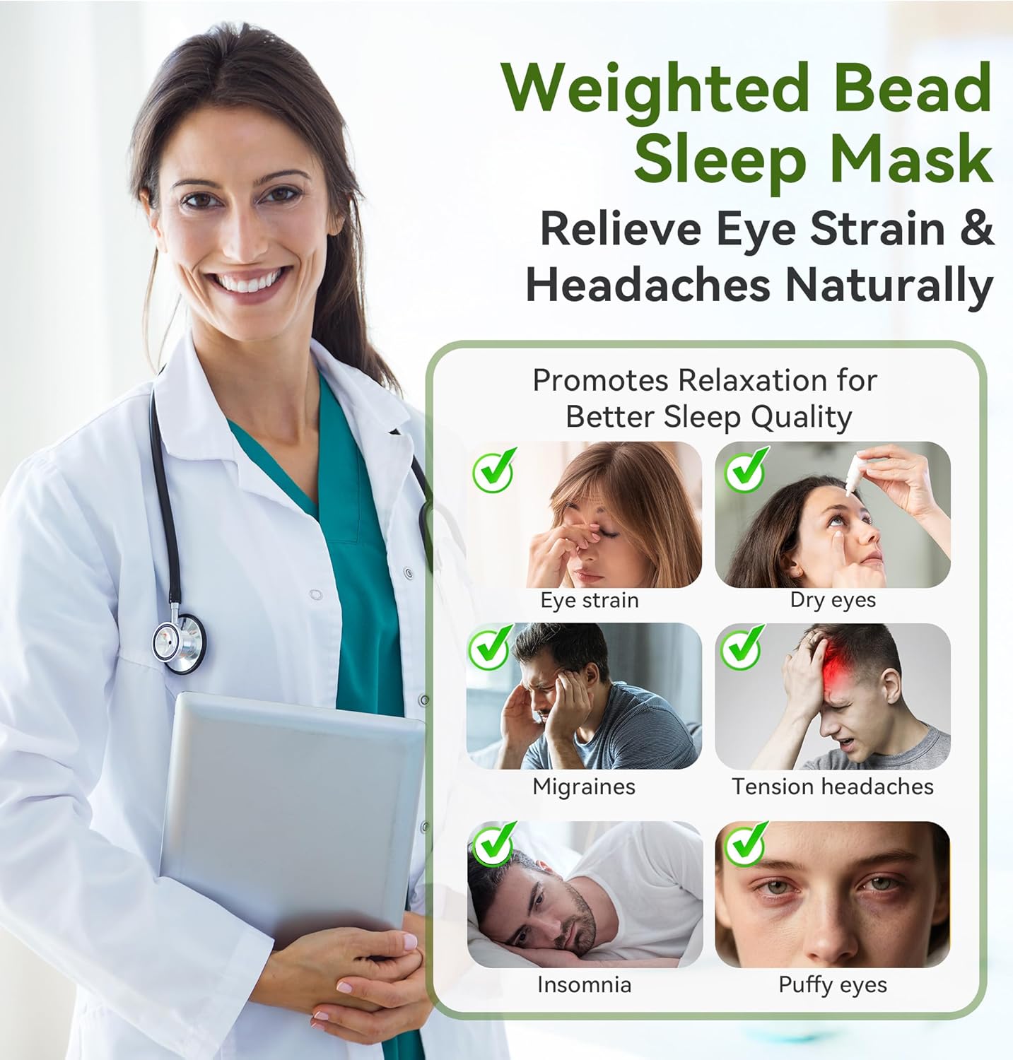 - Upgraded Gravity Beads Bluetooth Sleep Eye Mask: Filled with gentle glass beads, this bamboo cotton weighted sleep mask with headphones delivers soothing pressure to relieve tension, eye strain and migraines. The breathable bamboo cotton fabric and ergonomic design promote deeper relaxation, helping you unwind for a restful sleep. Ideal for travel, naps, or nighttime use, the bluetooth sleep mask blocks light effectively while the natural weight comforts sinus pressure and fatigue